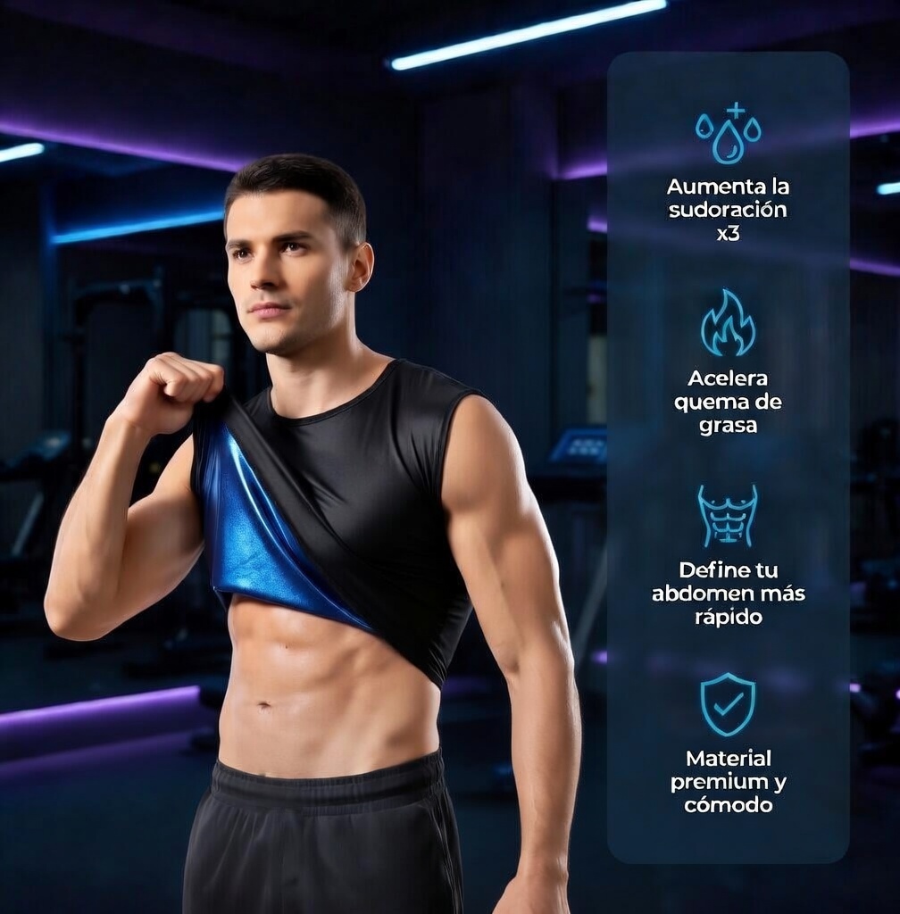 Diseñado para maximizar la quema de calorias, este chaleco térmico aumenta la temperatura corporal durante el ejercicio, ayudando a eliminar toxinas y reducir medidas más rápido.
