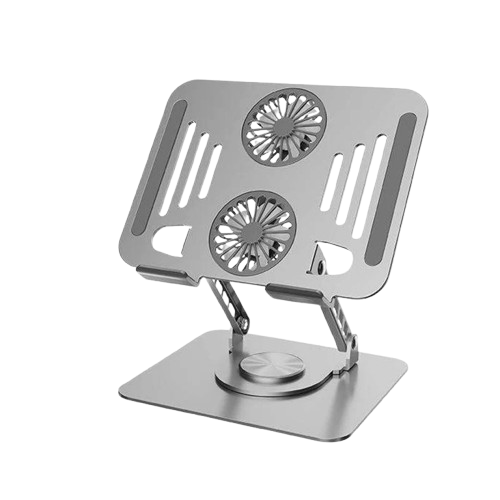 Soporte giratorio (altura ajustable) para portátil y con ventiladores de disipación de calor.